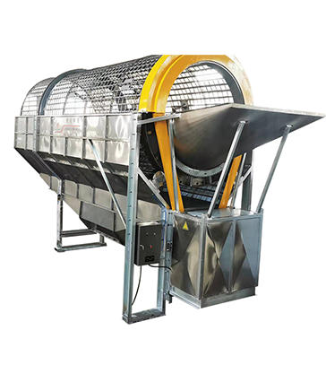 A series of mushroom-shaped pegs spiral placed along the whole length of the cage, forcing the skin forward to the exit. By using the manual hydraulic Jack to adjust the inclination of the rotating cage, the residence time of the skin in the cage can be controlled at will, and then control the removal of salt particles, excreta, soil and other impurities.