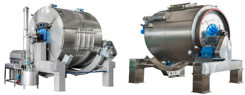 2、The drum body is made of stainless steel sheet,with high quality insulation material filled between inner and outer shell. 3、Manual or auto-exhaust valve which is configured at one side of the drum will eliminate the pressure of the drum during working process. 4、High segmented shelves are installed inside the drum body.When the drum rotates,in can fully flip the leather and liquid regardless of the conventional load or overload capacity,making them both go under S-shape route during the flipping process,so that the leather won’t roll up even at a high speed.So there is no need to use positive and negative rotation with low speed to solve the problem that the leather will roll up. 5、The drum is equipped with automatic liquid circulation filtration system of single direction rotation.When the drum rotates along with the direction of automatic liquid circulation,the liquid inside the drum will flow out from the end of the shaft,then flow into the coaxial central tube by circulation system after filtration.By this way,it can filter out skin residues,fur and sundries in the liquid and reach the full mixture effect.Besides,when the liquid goes through the circulation system again, the content of liquid chemical material can be revised and PH value can be adjusted by human intervention,such as increase the liquid temperature or add more chemical material. 6、Auxiliary electrical control box is installed on the right side of the drum for convenience of operation. 7、Exhaust foaming device is installed to eliminate the bubble gas produced during the working process. 8、For the drive system:through the triangle rubber belt,leather belt pulley gear box and spur gear drive,the motor can make the transmission reliable and durable.The drive shaft of the gear box is configured with pneumatic brakes. 9、For the electrical control system:we adopt frequency control,PLC circuit control,pneumatic or manual control drive valve,automatic start pump at high liquid level and manual start pump at arbitrary liquid level ,etc. All can be set on the instrument controller,such as the machine temperature,rotation period,total running time,downtime and so on.