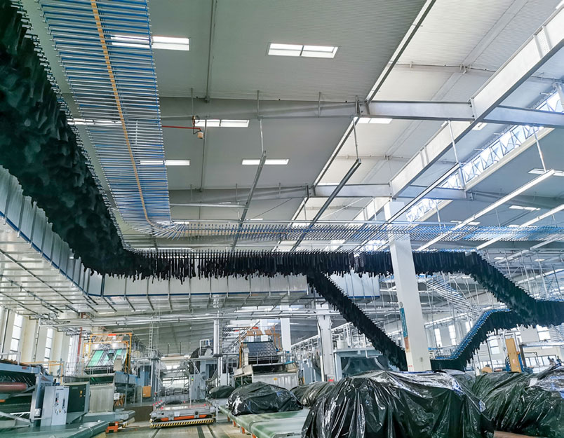 本機(jī)是由單機(jī)拖動(dòng)的高架懸掛式輸送掛晾自動(dòng)干燥機(jī)。它適用于各種皮革的自動(dòng)晾干。本機(jī)的特點(diǎn)是可以充分利用廠房空間,利用車(chē)間的余熱使皮革得到干燥。由于是自然干燥(必要時(shí)可輔以低溫干燥),皮革干燥效果好,并且節(jié)約能源。